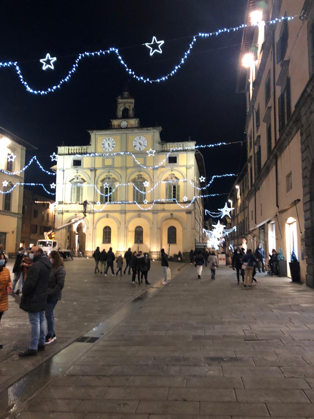 Un albero di quindici metri illuminato con luci bianche e addobbato secondo la migliore tradizione natalizia. Alla base del maestoso abete quattro pannelli colorati con gli auguri di Buon Natale “multietnici” in tutte le lingue del mondo dalla A alla Z. Un modo alquanto originale di aprire il periodo di festività natalizie e di fine anno segnato dall’emergenza da Covid-19 che ha purtroppo costretto a rinunciare a tante manifestazioni importanti della città. Proprio per questo nel pomeriggio l’accensione dell’albero di Natale (collocato in piazza Matteotti ad angolo fra il Loggiato Gilldoni e della Cassa di Risparmio) e delle luminarie del centro storico rappresenta forse ancora più la tradizione ed un messaggio di normalità e di speranza. A causa del maltempo l’esibizione ideata ed organizzata dall’Associazione Castello Danza assieme ad alcuni musicisti è stata posticipata a domenica prossima nel pomeriggio a partire dalle ore 18 sempre in Piazza Matteotti. “La tradizione è rispettata. Con l’accensione delle luci dell’albero e delle luminarie nel centro storico proprio nel giorno dell’Immacolata diamo il via ad una serie di iniziative in sicurezza e secondo le normative vigenti per iniziare stando uniti e insieme un periodo delle festività che sarà anomalo e che dobbiamo vivere con la maggiore serenità possibile”, è quanto dichiarato dal sindaco Luciano Bacchetta e dall’assessore al Commercio e al Turismo Riccardo Carletti, subito dopo l’accensione delle luci dell’albero di Natale in piazza Matteotti rinnovando anora gli auguri di buone feste a tutti i tifernati e non solo.