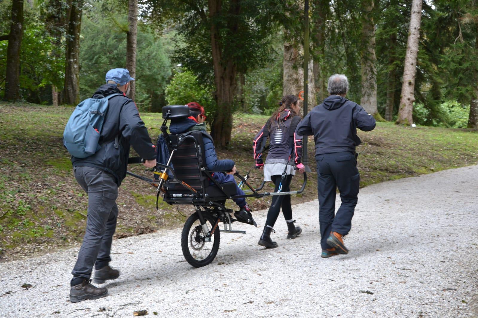 Se il pomeriggio di sabato è stato dedicato all’ascolto e al confronto, nella giornata di domenica, le parole si sono trasformate in gesto concreto. Grazie alla competenza e professionalità dei formatori dell’ Associazione il Cammino Possibile, i venti iscritti al corso di formazione e conoscenza della joëlette si sono cimentati nella conduzione di questo ausilio da trekking, che consente a persone con disabilità, di vivere l’esperienza dell’outdoor. Dopo una prima parte teorica, le due joëlette, messe a disposizione dall’Associazione, sono state portate su strada ed hanno attraversato le vie del centro storico della città tifernate. Successivamente il corso si è spostato nel bellissimo parco di Villa Montesca, dove i partecipanti sono stati messi alla prova su un terreno caratterizzato da sentieri sterrati e pendii.