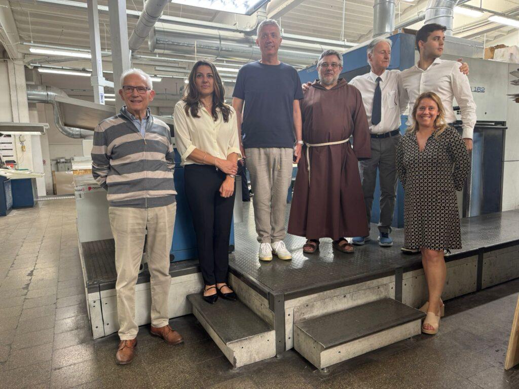 Ieri mattina mercoledi 4 giugno si è’ svolta presso lo stabilimento Petruzzi Srl in Via Venturelli 7/b la messa in stampa del Calendario di Frate Indovino 2026 alla presenza dei promotori del noto almanacco religioso fondato da padre Mariangelo da Cerqueto e curato dall’omonima casa editrice: presenti anche i titolari delle aziende Petruzzi e Cartoedit e dell’assessore alla Cultura, Michela Botteghi.