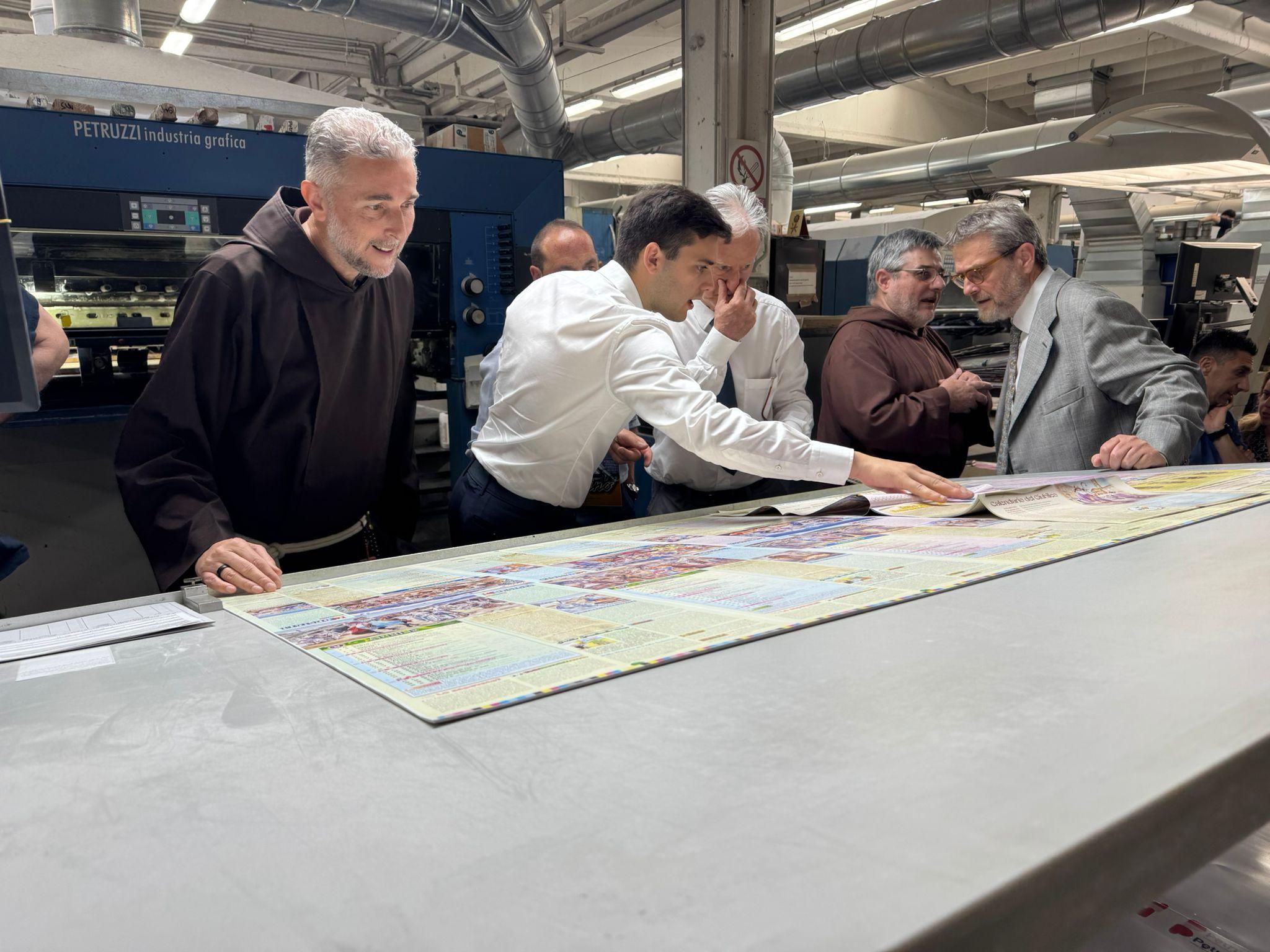 Ieri mattina mercoledi 4 giugno si è’ svolta presso lo stabilimento Petruzzi Srl in Via Venturelli 7/b la messa in stampa del Calendario di Frate Indovino 2026 alla presenza dei promotori del noto almanacco religioso fondato da padre Mariangelo da Cerqueto e curato dall’omonima casa editrice: presenti anche i titolari delle aziende Petruzzi e Cartoedit e dell’assessore alla Cultura, Michela Botteghi.