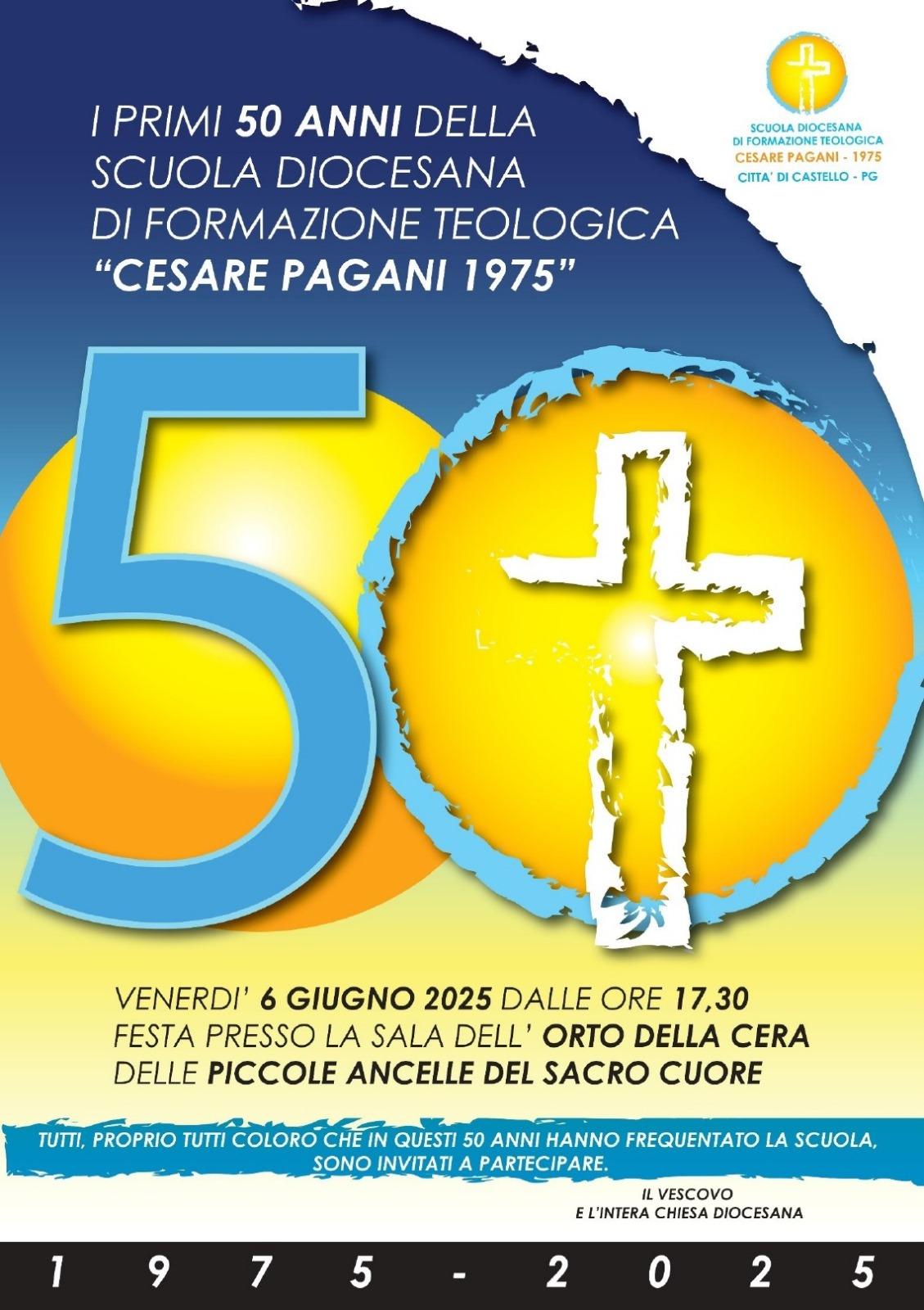 Cinquant’anni di impegno formativo, di dialogo con la cultura, di servizio alla Chiesa e alla comunità. È questo il traguardo che la Scuola diocesana di formazione teologica “Cesare Pagani – 1975” si appresta a celebrare con una festa aperta a tutti, in programma per domani, venerdì 6 giugno, alle ore 17.30, nella sala della Cera e giardino annesso delle Piccole ancelle del Sacro Cuore a Città di Castello.