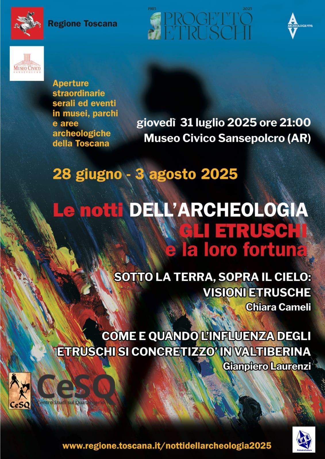 Per informazioni: www.regione.toscana.it/nottidellarcheologia2025 oppure contattare il Museo Civico al numero 0575 732218.