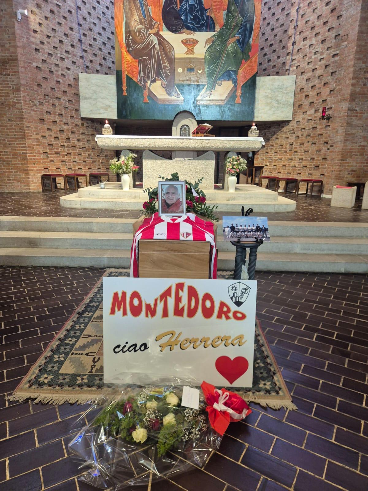 Oggi l’ultimo saluto a Silvio Penni, “Herrera”, un pezzo di storia della città e dello sport. La amata maglia biancorossa sopra la bara, accanto alla sua foto e quella della gloriosa formazione del Citta’ di Castello degli anni sessanta-settanta e alla base del catafalco un cartello della società rionale Montedoro con la scritta “ciao Herrera” con un cuore rosso. In tanti hanno preso parte questa mattina nella chiesa di San Pio X al rito funebre concelebrato da Don Achille Rossi e don Giancarlo Lepri.