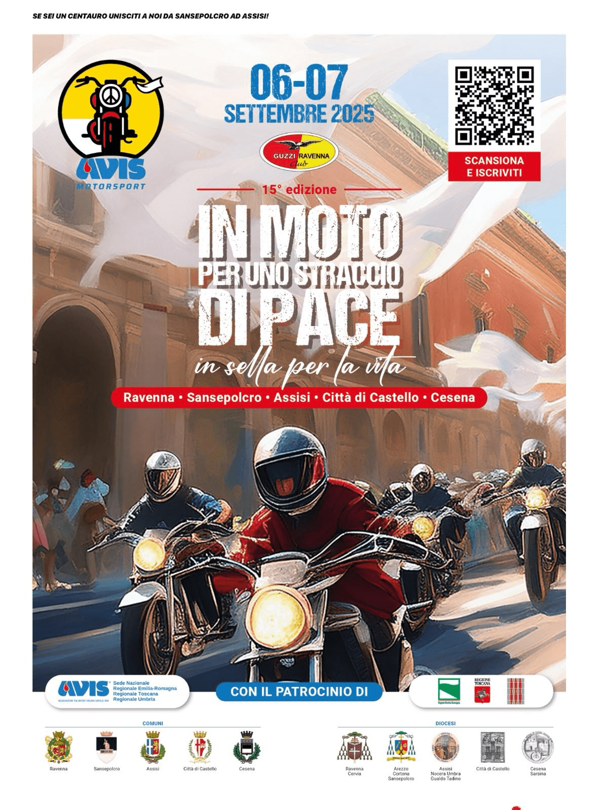 Il prossimo 7 settembre 2025 Sansepolcro sarà tra le città protagoniste della 15ª edizione di “In Moto per uno Straccio di Pace”, l’ormai tradizionale motoraduno organizzato dal Guzzi Club Ravenna con la collaborazione di Avis Motorsport.