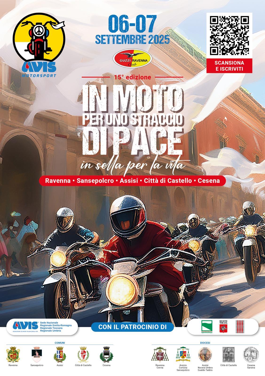 Domenica 7 settembre anche la nostra città sarà tra le protagoniste della 15° edizione della manifestazione “IN MOTO PER UNO STRACCIO DI PACE – In sella per la vita”, il motoraduno organizzato dal Guzzi Club Ravenna ed AVIS Motorsport.