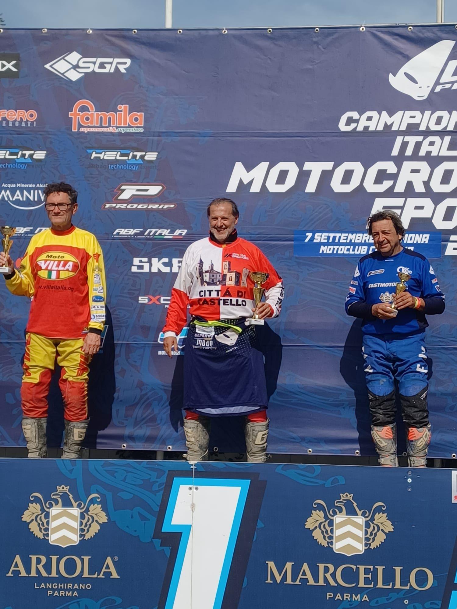 Una ulteriore dimostrazione di talento puro, passione e abilità che lo ha reso irrilevante ad ogni tentativo di resistenza da parte degli avversari. Grande soddisfazione in tutto l’entourage tifernate del cross, il crossodromo “G.Ceccarini” in località “la Trogna”, dove Fiorucci è cresciuto a colpi di gas e salti fra i tornanti, le discese e salite dello spettacolare circuito tifernate, autentico gioiello a livello nazionale. “Questo è il terzo titolo italiano della mia carriera senza dubbio il più sentito, conquistato al cospetto di grandi piloti di categoria che voglio dedicare alle persone care e a tutti gli amici e colleghi del moto club “Baglioni” un pezzo importante della mia vita, ben 50 anni, che porto nel cuore con orgoglio e passione”, ha dichiarato il neo campione italiano della categoria B2, le moto d’epoca fino al 1976.
