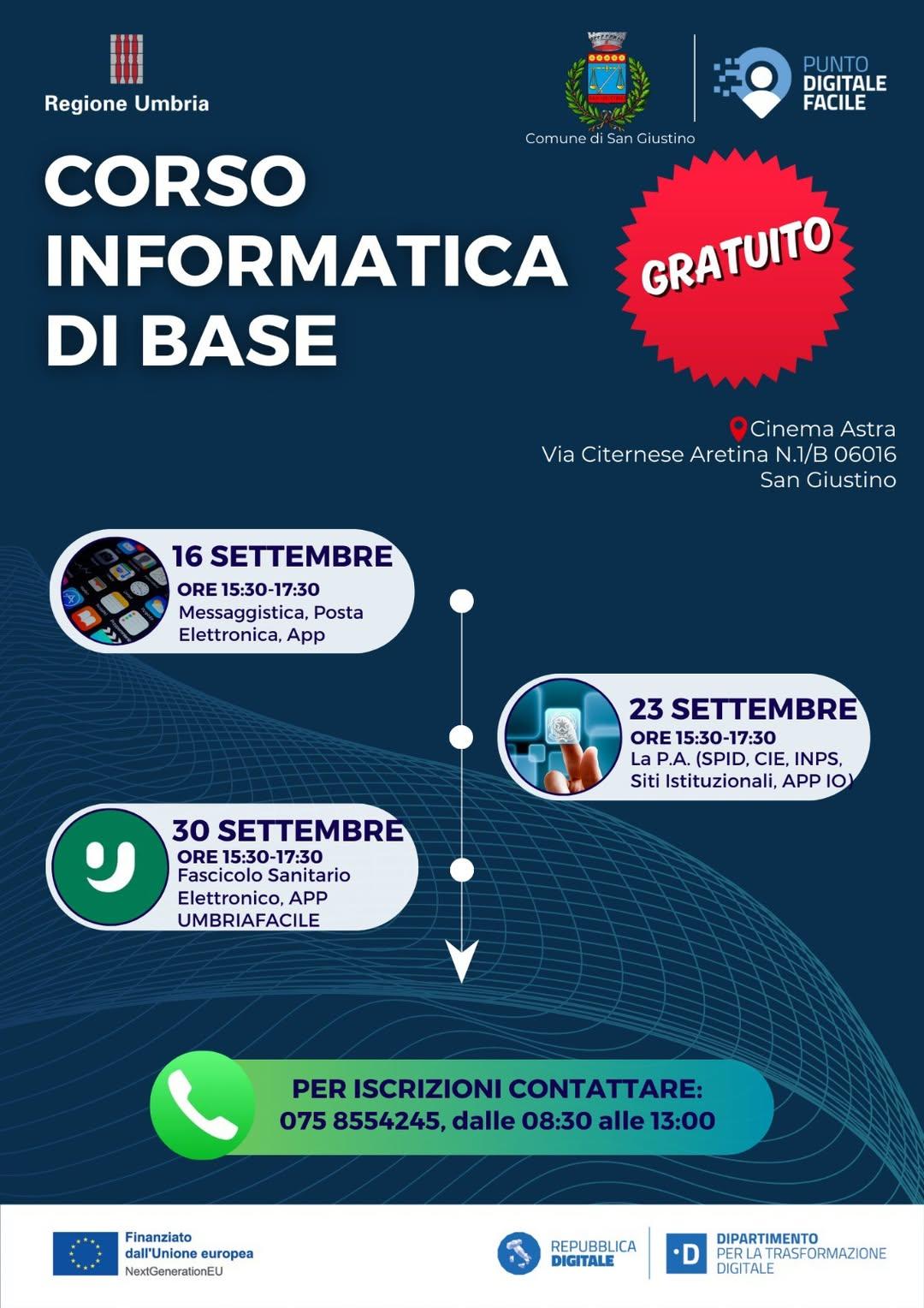 Il Comune di San Giustino, in collaborazione con la Scuola Bufalini, organizza un corso gratuito di Informatica di base presso il Cinema Astra in Via Citenese 1/B.
