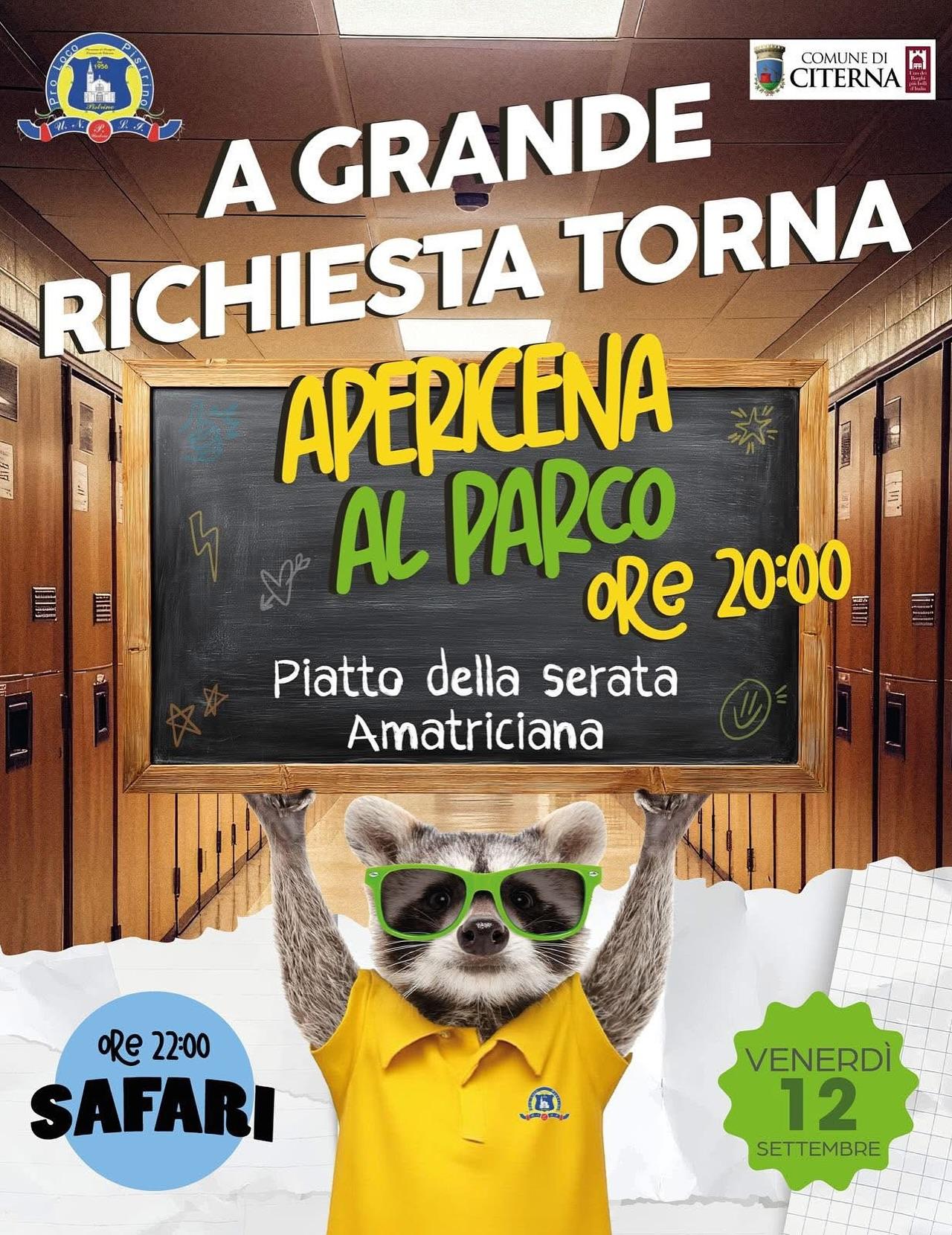 La festa prevede una serie di eventi e attività, tra cui un’apericena venerdì 12 alle ore 20:00, seguita da un concerto di musica safari alle ore 22:00.