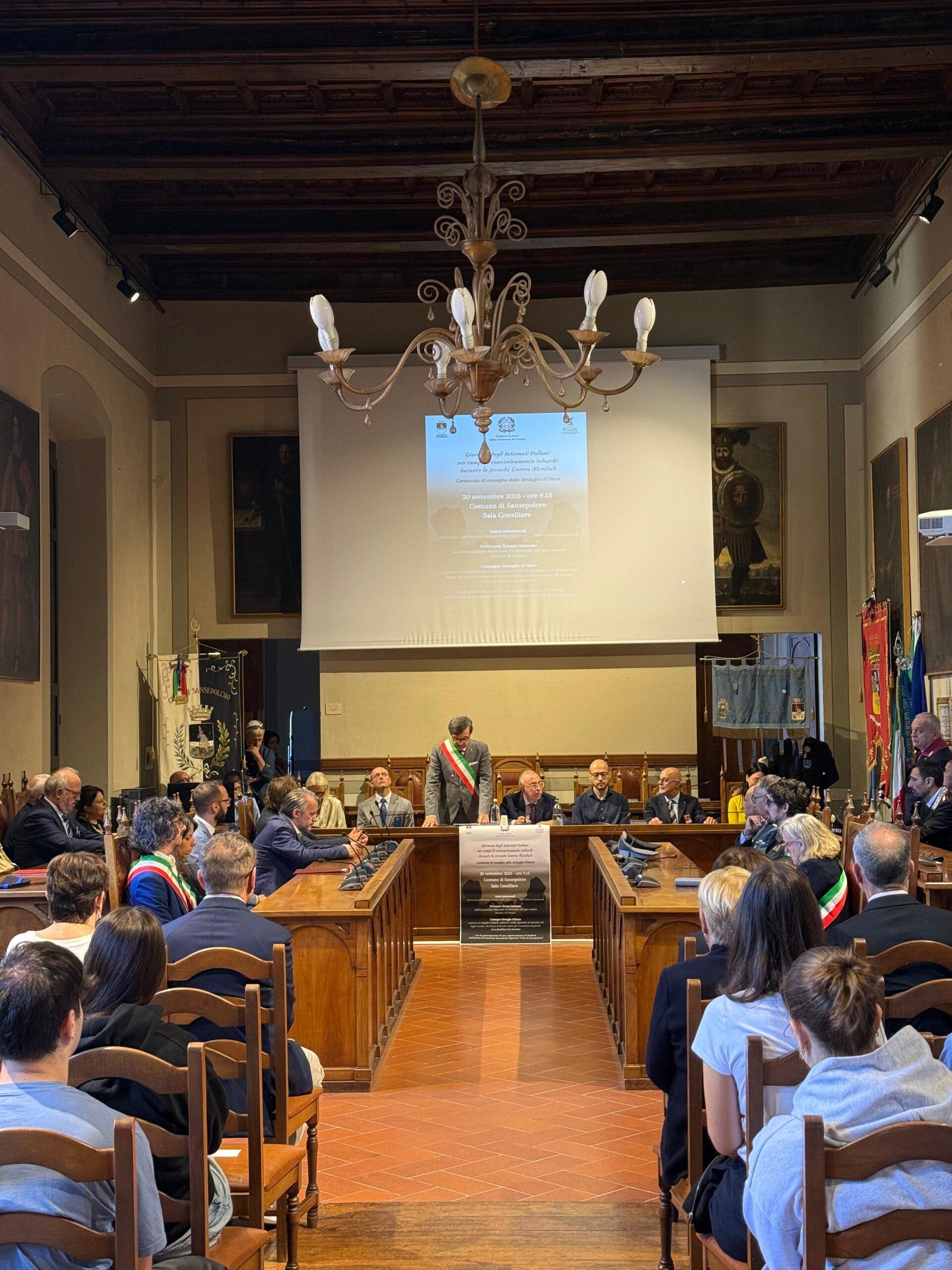 La cerimonia si è conclusa con la consegna di una medaglia d’onore alla memoria concessa dal Presidente della Repubblica, ai familiari del militare Gino Giorni, nato a Sansepolcro e internato dal settembre del 1943 al febbraio del 1945. Alla celebrazione ha preso parte una rappresentanza di studenti dell’Istituto di istruzione secondaria superiore “Città di Sansepolcro”.