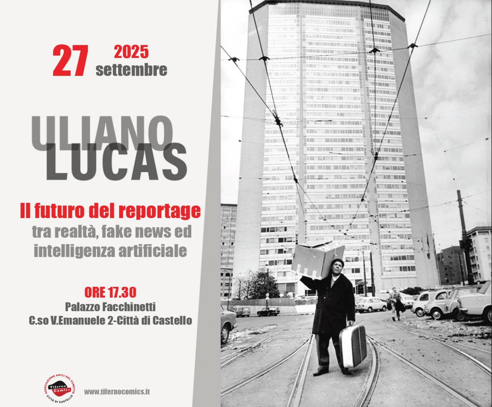Tiferno Comics è orgogliosa di annunciare per sabato 27 settembre alle ore 17:30 a Palazzo Facchinetti un grande evento che vedrà come ospite il grande fotografo Uliano Lucas per un incontro in cui si discuterà di reportage, fake news ed intelligenza artificiale.
