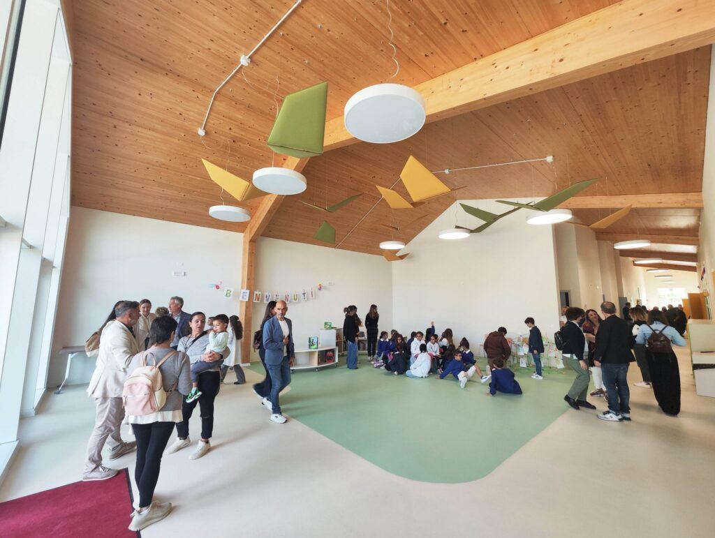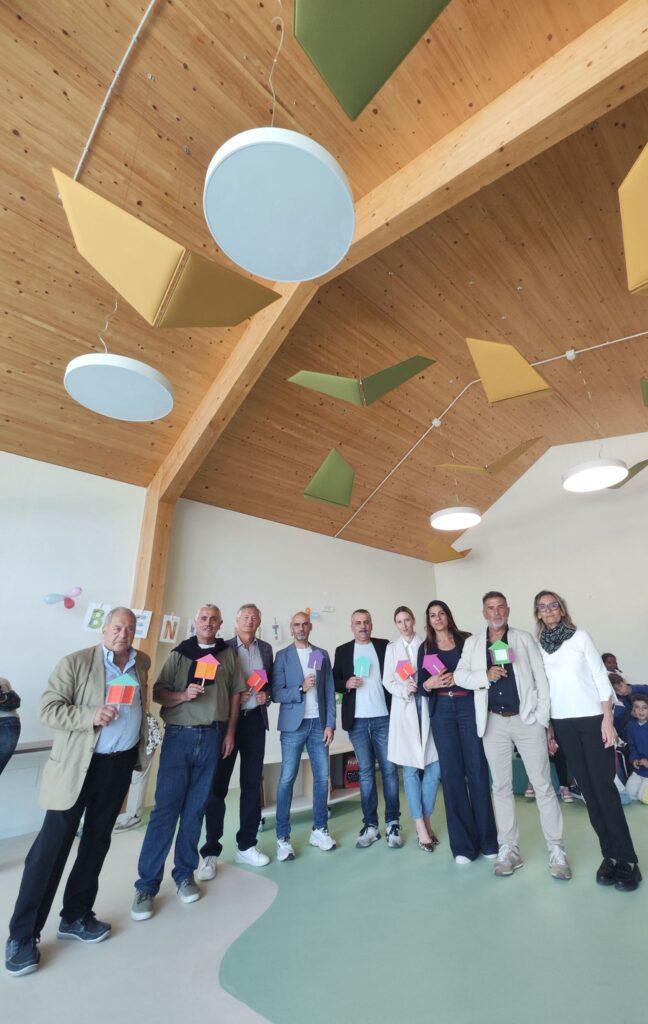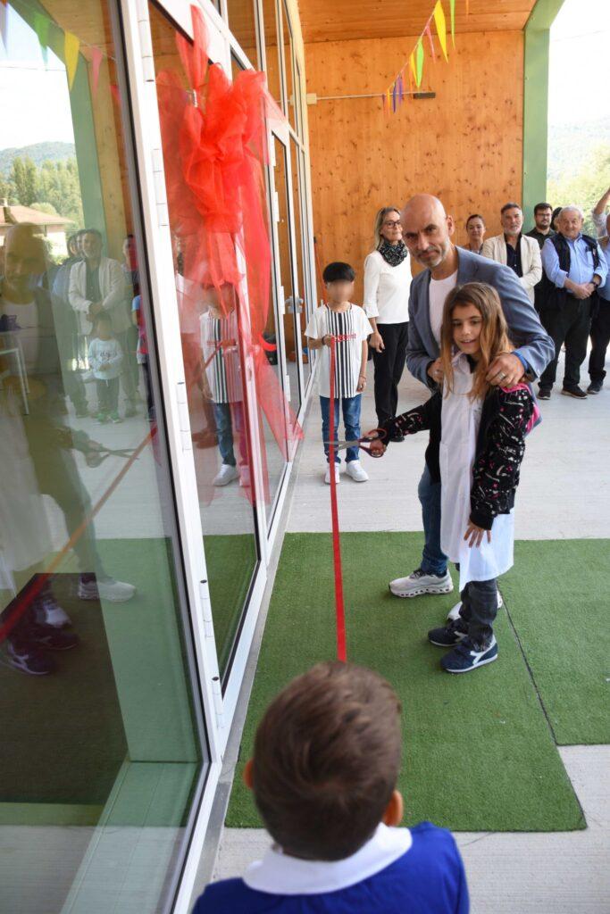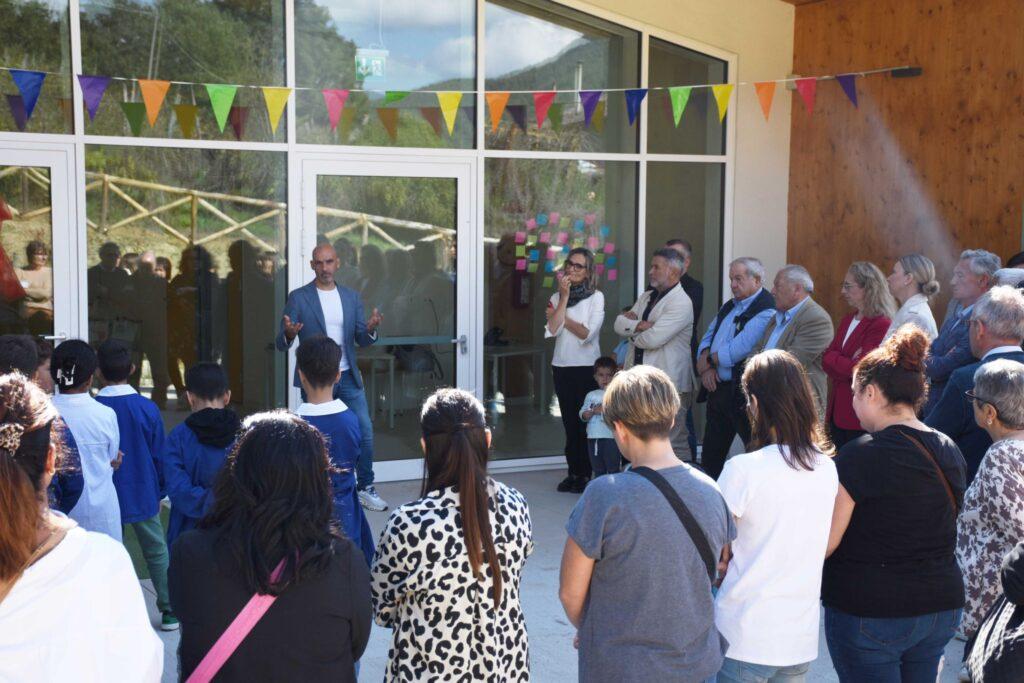 A Badia Petroia è tornata la scuola primaria. Con l’inaugurazione del nuovo edificio della frazione, sul quale sono stati investiti 1 milione e 575.075 euro più oltre 30 mila euro per la sistemazione esterna, stamattina l’amministrazione comunale di Città di Castello ha ripreso idealmente a scrivere il libro della storia di una intera comunità, da sempre profondamente legata alla sua istituzione educativa. Un racconto che si era interrotto nel febbraio del 2017 con la chiusura per inagibilità della vecchia scuola a causa del terremoto e con il trasferimento di tutti i bambini nel vicino istituto di Morra. Tagliando il nastro rosso davanti alla porta d’ingresso insieme a una emozionatissima studentessa tra gli applausi e qualche lacrima dei presenti, il sindaco Luca Secondi ha scritto idealmente la prima riga di un racconto che continua e che regalerà nei prossimi anni tante nuove pagine. “Una riga in cui c’è scritto che la promessa di restituire la scuola primaria a questa comunità è stata mantenuta”, sottolinea Secondi, che nella cerimonia pubblica davanti all’ingresso ha ricordato l’impegno preso con le famiglie e tutti gli abitanti della frazione nel momento della sofferta, ma inevitabile, scelta di chiudere uno stabile che non offriva più le necessarie garanzie di solidità. “Oggi abbiamo di fronte a noi un edificio moderno e sicuro, che soddisfa i più attuali parametri dell’architettura sostenibile e bioclimatica, dell’efficienza energetica e della qualità degli ambienti educativi”, ha dichiarato il primo cittadino, nell’abbraccio delle famiglie dei bambini della scuola che ha circondato gli amministratori e il personale scolastico. “Grazie alla nuova scuola primaria, che si affianca alla scuola dell’infanzia realizzata alcuni anni fa, Badia Petroia ospita un polo educativo di riferimento per la zona sud del territorio comunale di Città di Castello e non solo, visto che qui ci sono bambini provenienti anche dalla vicina Toscana: una risposta importante e doverosa – ha puntualizzato Secondi – a un territorio che aveva la necessità di un punto univoco di aggregazione del mondo scolastico”. Insieme al vice sindaco Giuseppe Stefano Bernicchi, agli assessori direttamente coinvolti nel progetto Riccardo Carletti e Letizia Guerri, e agli altri colleghi della giunta comunale Michela Botteghi e Mauro Mariangeli, il primo cittadino ha evidenziato: “ogni volta che si inaugura una scuola si investe sul futuro della nostra comunità”. “Ecco perché – ha aggiunto – questa amministrazione comunale continuerà a investire nell’edilizia scolastica come ha fatto in questi anni, considerando questo impegno il più importante per la crescita delle nuove generazioni e la coesione della comunità”. A parlare di “un momento importante per le famiglie e per i bambini, ma anche per il contributo che la scuola può dare alla costruzione del futuro di questa comunità” è stata la dirigente scolastica dell’Istituto comprensivo Alberto Burri di Trestina, Stefania Migliorucci, mentre l’ambassador di Indire Massimo Belardinelli ha dato conto della costante evoluzione della progettazione degli spazi educativi su scala nazionale, di cui la scuola di Badia Petroia è uno degli esempi migliori. Dopo la benedizione del parroco don Adolfo Vichi, Di fronte ai bambini con i genitori, alle docenti e al personale tecnico dell’istituto, è stato ricordato come l’inaugurazione della scuola riannodi un filo rosso della storia legato all’eredità umana e professionale lasciata a Badia Petroia da una generazione di docenti della famiglia Bellucci, che dai primi del ‘900 ha insegnato nella frazione, crescendo con amore e professionalità molte generazioni. L’affetto e la stima per le maestre di una volta sono tornati vividi attraverso le parole della figlia, nipote e bisnipote delle stesse, Lucia Zappalorto, docente in questo stesso plesso da molti anni e coordinatrice dell’attività didattica, che ha sottolineato l’importanza culturale del loro operato, del patrimonio umano e professionale lasciato con il loro lavoro. Anche il consigliere comunale Fabio Bellucci, presente insieme al collega Ugo Tanzi, le ha ricordate attraverso la lettura di una poesia da lui stesso scritta, evidenziando non solo un legame di sangue, ma anche di profondo affetto.