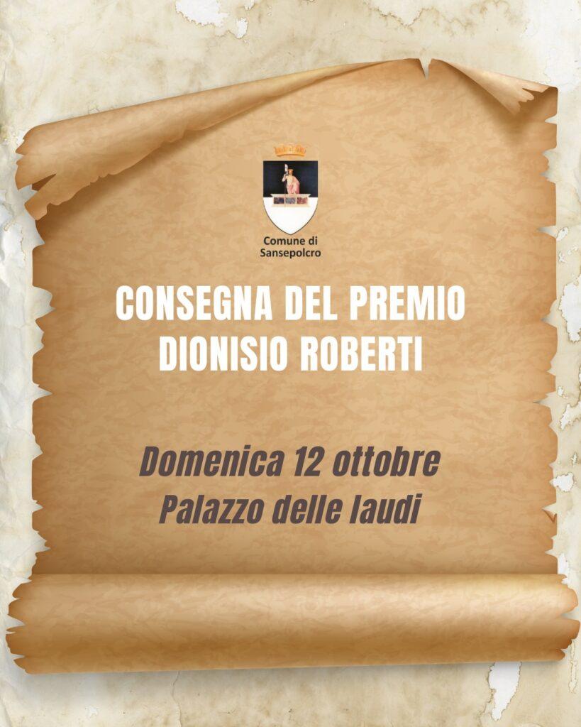 Il prossimo 12 ottobre, come consuetudine, si terrà la consegna del premio “Dionisio Roberti”, riconoscimento agli studenti più meritevoli delle scuole medie e superiori del territorio. L’iniziativa, sostenuta dal Comune di Sansepolcro, dalla Banca di Credito Cooperativo di Anghiari e Stia e dalla Fondazione Marco Gennaioli onlus, prevede un’apposita cerimonia di consegna dei premi (diplomi, medaglie, pubblicazioni e carte prepagate di 150 euro per gli studenti delle medie e di 260 euro per gli studenti delle superiori) che si svolgerà la mattina di domenica 12 ottobre a partire dalle 10.30 nella sala consiliare di Palazzo delle Laudi.