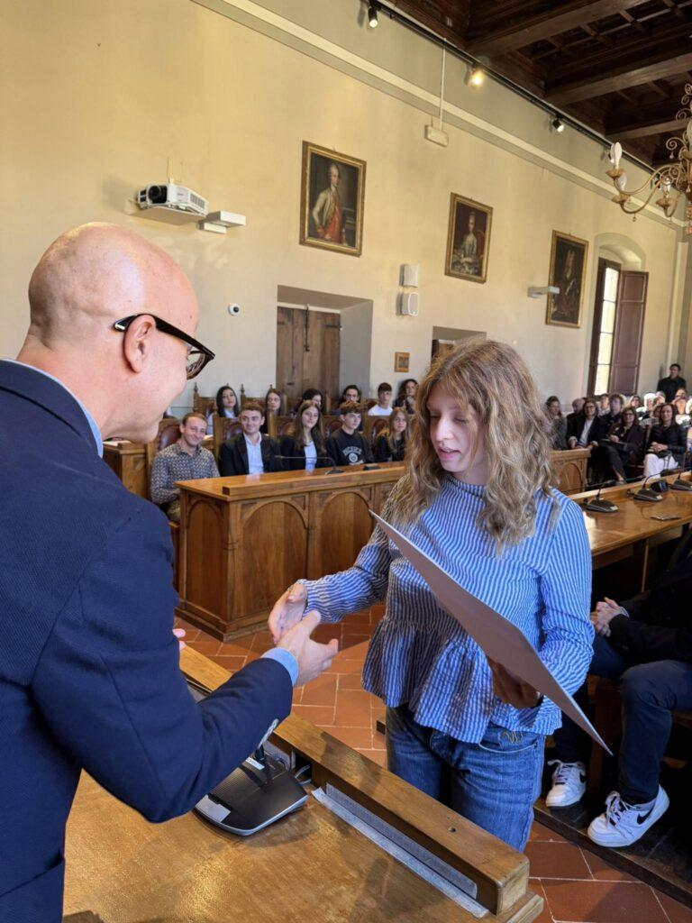 Nella mattinata del 12 ottobre 2025 dopo i riconoscimenti agli alunni delle scuole medie, è proseguita la cerimonia della consegna dei premi agli studenti delle scuole superiori, che si sono distinti per impegno, costanza e risultati eccellenti.