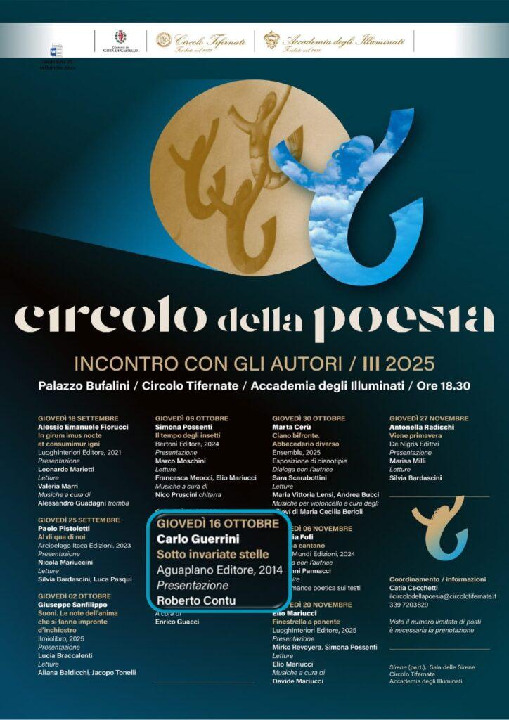 Quinto appuntamento della terza edizione del CIRCOLO DELLA POESIA con il poeta Carlo Guerrini al Circolo Tifernate, Accademia degli Illuminati giovedì 16 ottobre alle ore 18.30.