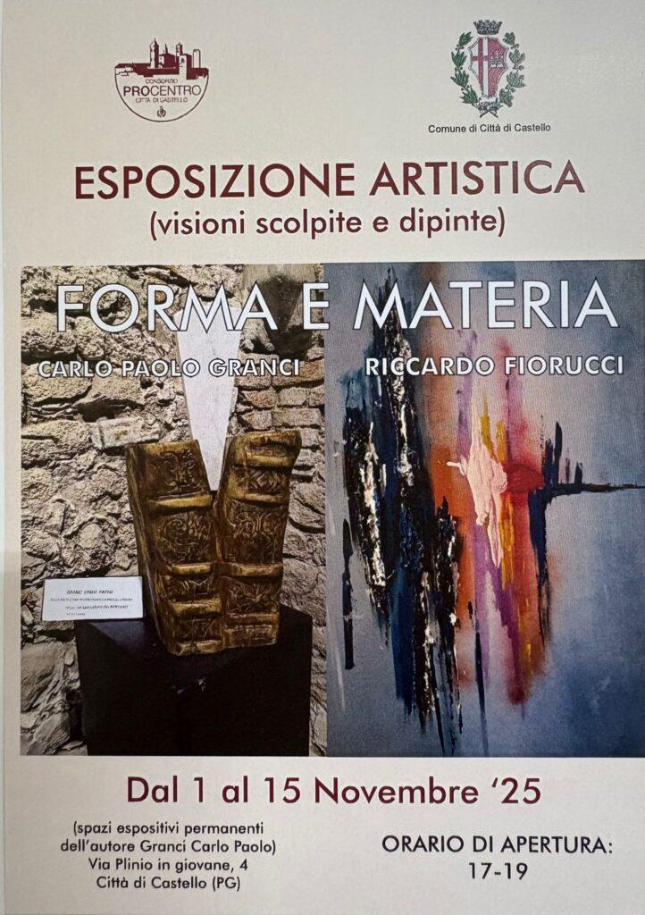 Negli spazi espositivi di via Plinio il Giovane: “Forma e Materia”, esposizione artistica di Carlo Paolo Granci e Riccardo Fiorucci. Dal 1 al 15 novembre orario 17:00-19:00