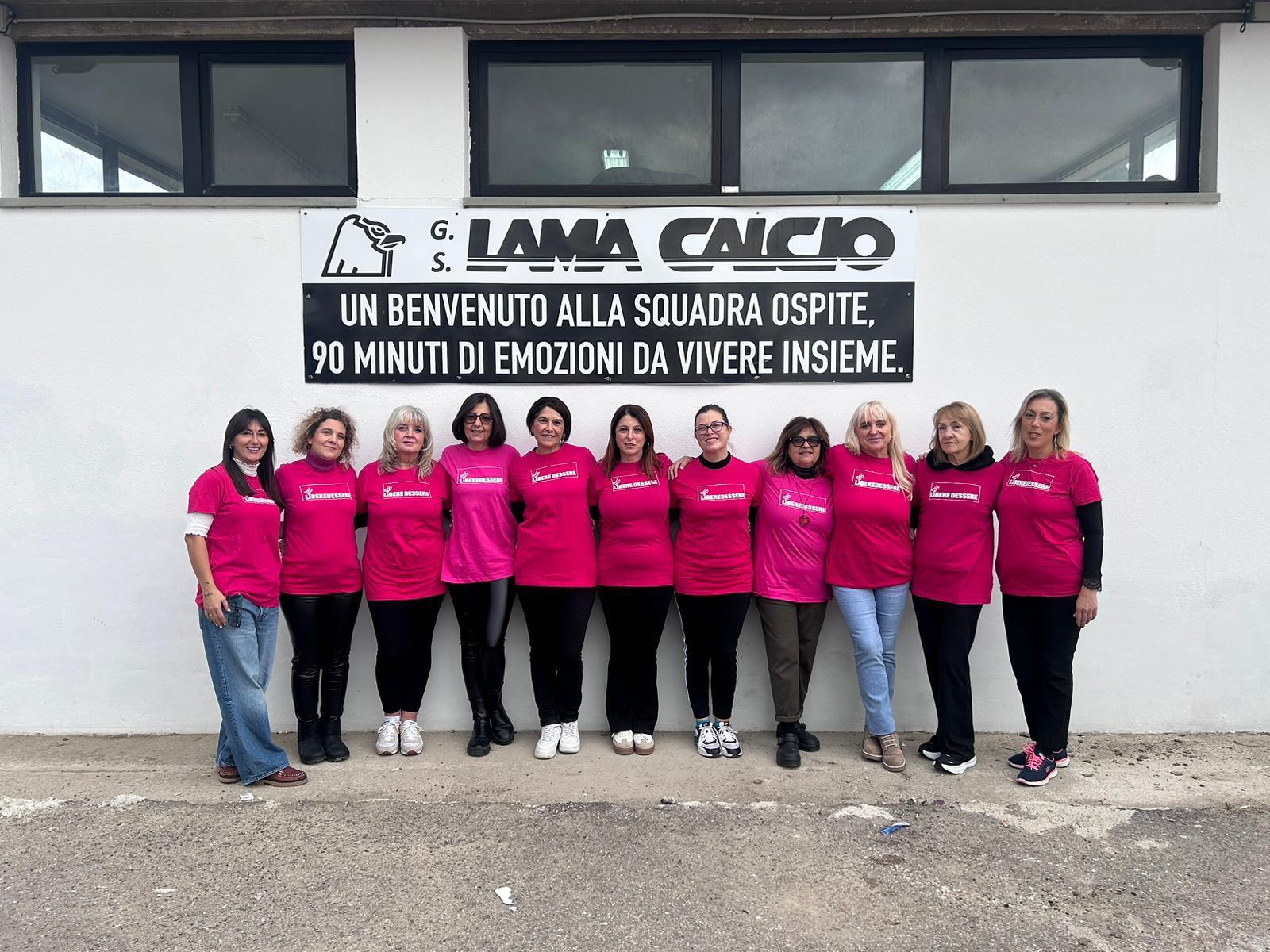 Bella ed originale iniziativa allo stadio “Polchi-Laurenzi”, domenica scorsa in occasione dell’incontro di cacio valevole per il campionato di Prima Categoria girone “A” fra i locali del G.S. Lama Calcio e la S S.D. Parlesca. Al momento di ingresso nel rettangolo di gioco i giocatori sono stati accompagnati per mano da LIBEREDESSERE con i suoi volontari insieme al gruppo femminile della Tiber Volley con le maglie rosse con scritte e slogan contro la violenza di genere. Un evento originale e propedeutico alla settimana di iniziative promosse dal comune di San Giustino che vedranno domenica 23 a Villa Graziani lo spettacolo teatrale “Affetti Collaterali” con Farfalle Libere, Lunedì 24 novembre alle ore 18.00 al Museo del Tabacco il Convegno “Lo sport educa al rispetto” e martedì 25 novembre alle ore 10.00 al cinema Teatro Astra l’incontro “La Cultura dell’ascolto come antidoto alla violenza” rivolto ai ragazzi della scuola secondaria di primo grado dell’Istituto Comprensivo Leonardo Da Vinci.