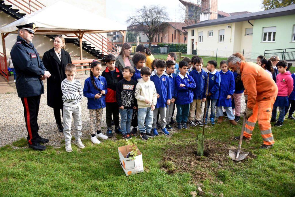 Custodire e proteggere la vita degli alberi è il modo di imparare a prendersi cura anche dei coetanei, delle persone e dei luoghi che ci circondano: il messaggio ai bambini del Comune, dei Carabinieri Forestali e della Direzione del Primo Circolo Didattico San Filippo nell’iniziativa di stamattina alla scuola primaria di San Pio X per la Giornata nazionale degli alberi