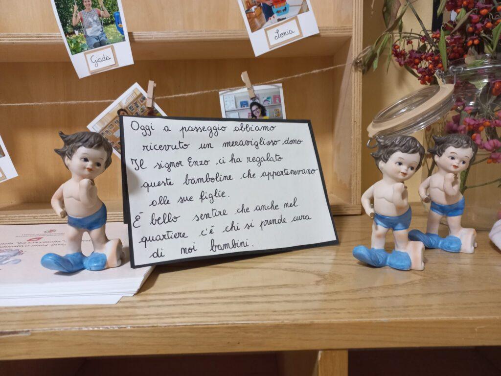 Il saluto, i racconti di nonno Enzo ai bambini dell’asilo nido e tre statuette in ceramica in regalo:  bella storia di vita quotidiana. Il nido d’infanzia Kennedy si trova a Città di Castello presso il quartiere “La casella”. Il nido ospita 27 bambini e bambine dai 3 ai 36 mesi. La modalità di lavoro del nido d’infanzia è centrata su esperienze di apprendimento all’aperto. I bambini e le bambine vivono quotidianamente il giardino, il terrazzo e le strade del quartiere. Il coordinamento, guidato da Benedetta Vitaloni, ha accolto la richiesta delle educatrici di dotare il nido del “Turtle Kiddy bus” (passeggino a sei posti) per favorire il diritto al gioco in strada e il contatto con il territorio per dare ai bambini e le bambine l’opportunità di sentirsi all’interno di una comunità educante. “Una mattina di fine ottobre – spiegano con soddisfazione le educatrici – siamo usciti per godere di una giornata tiepida autunnale. Ci siamo incamminati per raggiungere i bambini che erano già usciti. Avevamo già salutato il cane Romeo,  che  abita nella casa di mattoncini marroni, quando la nipote dello zio Enzo ci ha invitato a fermarci. Dal  balcone ci raggiunge infatti  il suo saluto,  accompagnato da un grande sorriso. Chiede  di ascoltarlo perché  vuole  raccontarci la sua storia; racconta di avere tre figli e sei nipoti,  che gli piace molto stare tra la gente perché da giovane aveva un banco in piazza a Città di Castello. Ci aveva già visto altre volte e vedere questi bambini così piccoli lo avevano emozionato molto facendogli ricordare i momenti del passato con i suoi figli. Per questo motivo a voluto farci un dolcissimo regalo; è sceso ed ha regalato ai bambini tre statuette in ceramica che appartenevano ai suoi figli. È per noi un regalo prezioso che racconta la custodia di un dolce ricordo. Abbiamo apprezzato la condivisione dell’intimità di una persona anziana che si è emozionata e ci ha affidato il compito di conservare la bellezza dell’essere bambino. Abbiamo reso partecipi anche i genitori lasciando le statuette esposte nel nostro ingresso, perché per noi, “Nido è casa e casa è ogni affetto che ci abita dentro”, hanno concluso le educatrici. Una bella storia di vita quotidiana che è stata sottolineata anche dall’assessore alle Politiche educative e scolastiche, Letizia Guerri: “nell’ambito del progetto del nido, questi incontri spontanei che mettono a confronto generazioni diverse sono la vera essenza della nostra comunità locale. Grazie a chi lo ha ideato e messo in pratica, ai bambini e a nonno Enzo, una persona davvero speciale”.