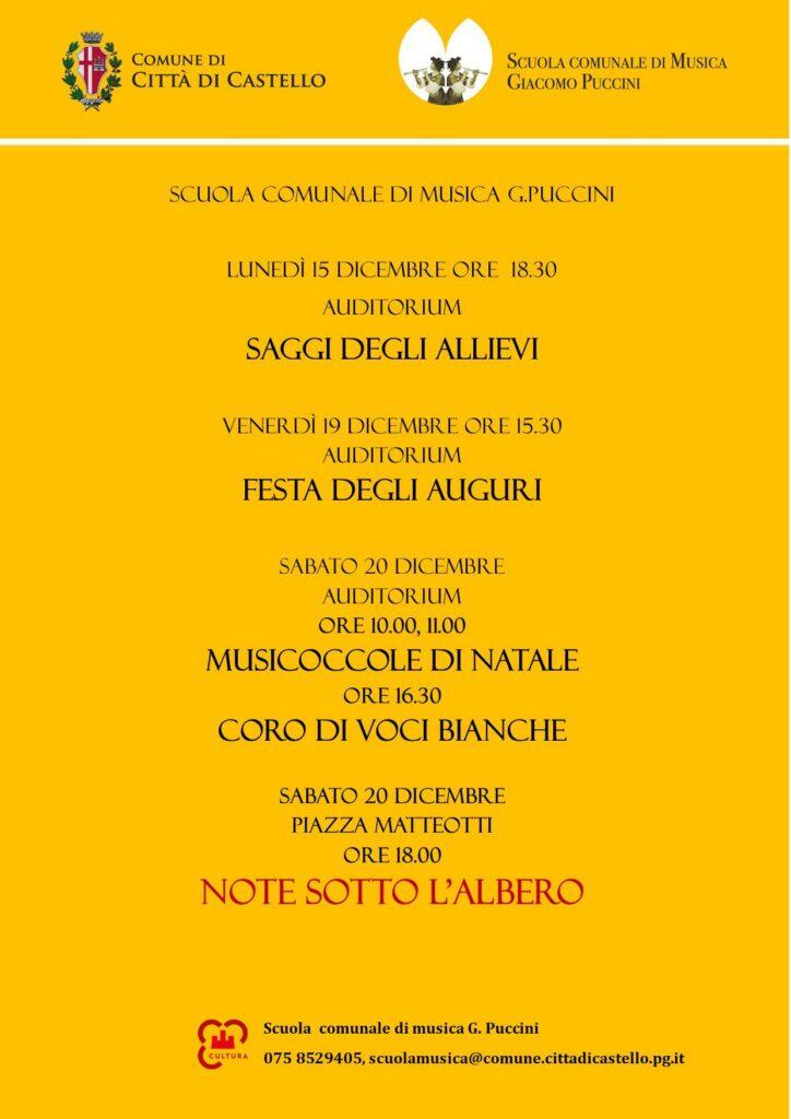 A coronamento delle iniziative, la Scuola Giacomo Puccini offrirà alla città il Concerto di Natale in Piazza Matteotti, un evento aperto a tutta la cittadinanza che porterà musica e spirito natalizio nel cuore di Città di Castello. Alle ore 18:30 “Note sotto l’albero” trasformerà la piazza in un grande palcoscenico a cielo aperto dove la musica sarà momento di incontro, condivisione ed emozione.