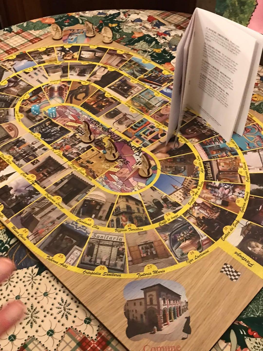 “NgiropelBorgo”. E’ il nome del singolare gioco da compagnia ideato per queste feste di Natale. Una proposta originale e al tempo stesso capace di valorizzare angoli e storia della città pierfrancescana. Modellato sul tradizionale e conosciuto Gioco dell’Oca, “NgiropelBorgo” ha dadi, pedine, regolamento e 63 caselle del percorso raffiguranti attività, palazzi e scorci architettonici di Sansepolcro.