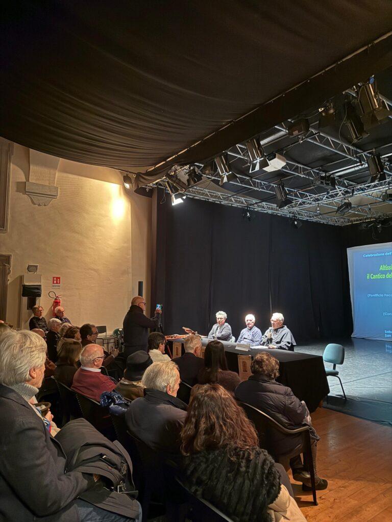 L’incontro, ospitato al Teatro alla Misericordia di Sansepolcro, è stato aperto dal saluto dell’Assessore Francesca Mercati ed ha offerto un momento di approfondimento e riflessione sul Cantico delle creature, grazie agli interventi di Padre Felice Autieri e Salvatore Dell’Atti, che hanno accompagnato il pubblico in un percorso tra spiritualità, poesia e musica, riscuotendo interesse e apprezzamento. Presente anche Don Giancarlo Rapaccini, parroco della Cattedrale di Sansepolcro.