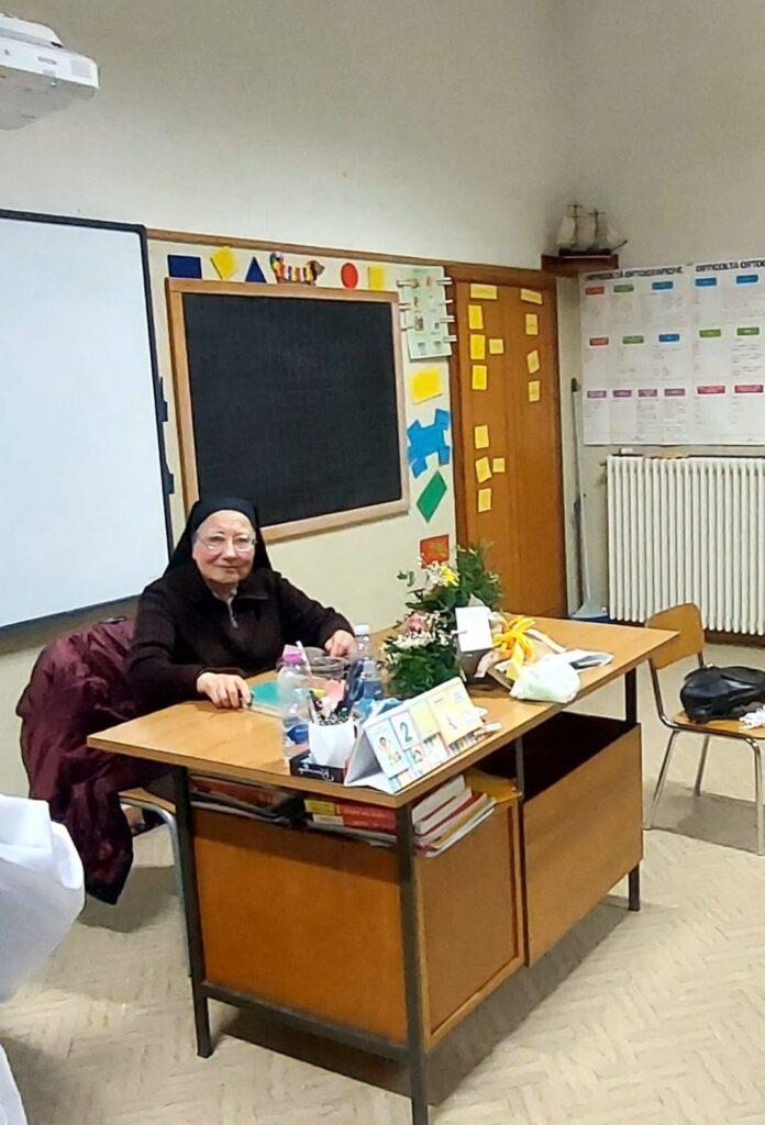 Il momento più intenso della giornata è stato l’ingresso in classe di Suor Gabriella Pascucci, accompagnata con un pretesto dalla direttrice e completamente ignara di ciò che stava per accadere. Davanti a lei ha trovato i suoi primi allievi, la prima classe della sua carriera di insegnante. La sorpresa ha lasciato spazio a commozione, abbracci e ricordi condivisi. In quell’istante, come hanno commentato alcuni ex alunni, «abbiamo visto l’Amore vincere».