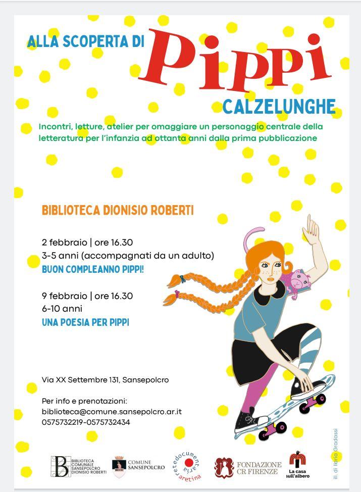 Ottant’anni e non sentire affatto il peso del tempo, merito forse della celebre pillola Cunegunda che impedisce di diventare grandi. La Biblioteca comunale Dionisio Roberti di Sansepolcro si prepara a omaggiare una delle icone più amate della letteratura per l’infanzia: Pippi Calzelunghe.