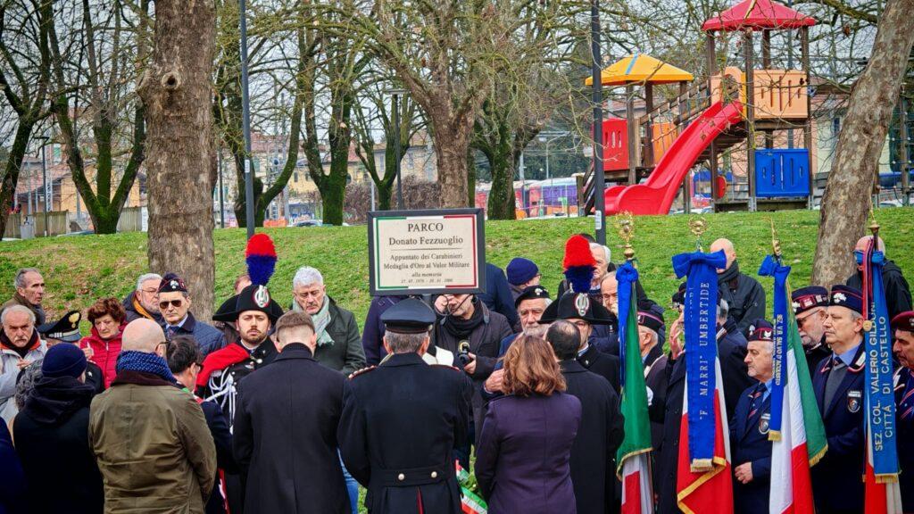 UMBERTIDE – La città ha ricordato il suo eroe. Vent’anni dopo l’uccisione del carabiniere Donato Fezzuoglio, Umbertide ha scelto di legare in modo permanente il suo nome a uno spazio pubblico della città. Il parco Usu, tra l’ex Tabacchi e lo stadio, sarà ufficialmente intitolato al giovane appuntato, medaglia d’oro al Valor militare, caduto in servizio il 30 gennaio 2006. “Sono trascorsi esattamente vent’anni da quel lunedì del 2006 in cui l’Appuntato Donato Fezzuoglio, a soli 30 anni, immolò la propria vita per difendere la comunità di Umbertide, lasciando un vuoto incolmabile nella sua famiglia e tra i colleghi.