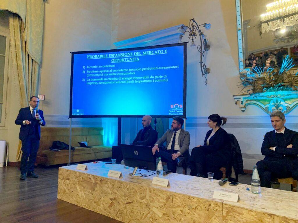 L’Avvocato Buonafede, esperto di diritto dell’energia e di redazione di statuti e regolamenti delle comunità energetiche, ha contribuito alla realizzazione dello statuto della Comunità Energetica EOS e ha offerto un intervento sulle caratteristiche giuridiche delle CER, sottolineandone l’importanza dal punto di vista normativo.
