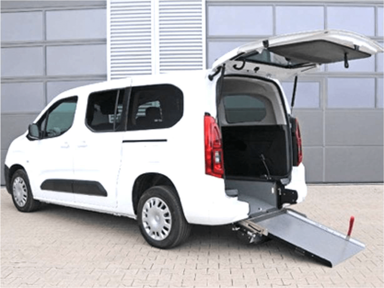 Sopra il Fiat Doblò a pianale ribassato con pedana di sollevamento manuale per la Croce di San Giovanni di Città di Castello