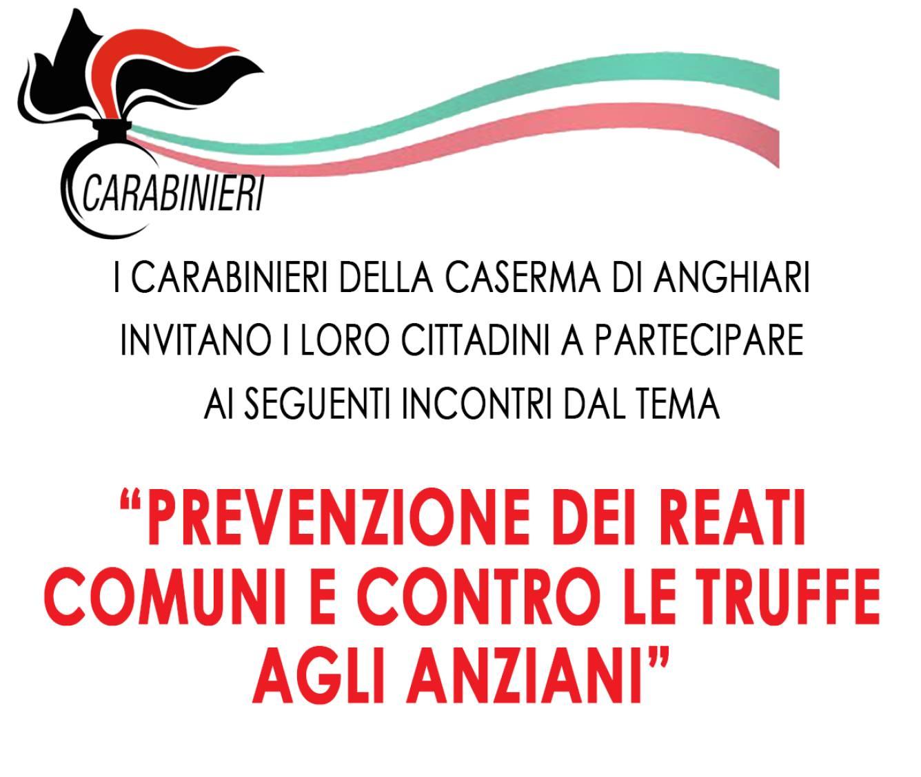 Prevenzione dei reati: incontro con i Carabinieri ad Anghiari giovedì 12 febbraio alle 17:30 Circolo di aggregazione sociale in Piazza IV Novembre. I cittadini sono invitati a partecipare