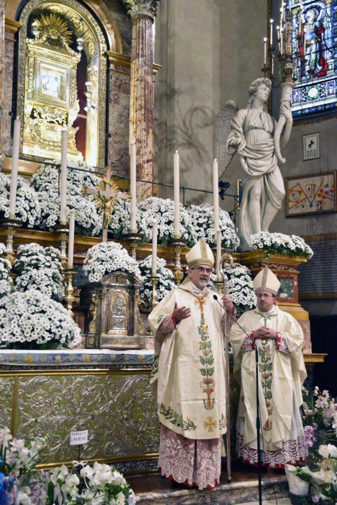 Grande festa nella diocesi di Arezzo-Cortona-Sansepolcro per la solennità della Madonna del Conforto. Una grande partecipazione di popolo che ha gremito la cattedrale di Arezzo ininterrottamente dalle prime ore del mattino e fino a tarda notte, con l’omaggio alla Madre di Dio da parte di persone provenienti da tutto il territorio diocesano e oltre. Ospite della giornata il cardinale Pierbattista Pizzaballa, Patriarca latino di Gerusalemme, che dopo l’incontro pubblico della giornata precedente in San Francesco, con quasi mille partecipanti, ha presieduto la Messa Pontificale delle 10.30.