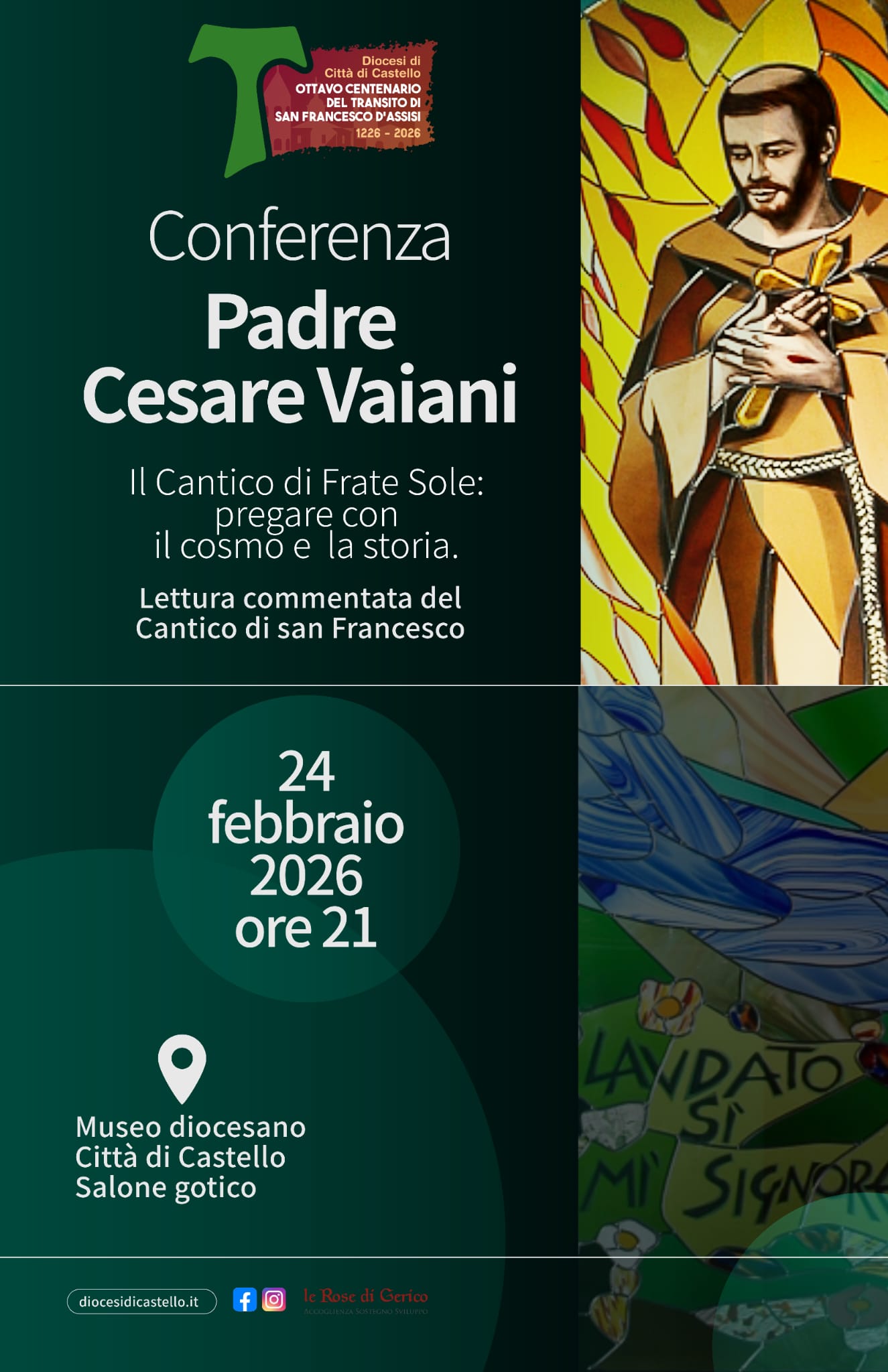 Il primo incontro è fissato per martedì 24 febbraio alle ore 21 nel Salone gotico del Museo diocesano. Protagonista, padre Cesare Vaiani con una conferenza dal titolo “Il Cantico di Frate Sole: pregare con il cosmo e la storia”, lettura commentata del celebre testo di san Francesco.