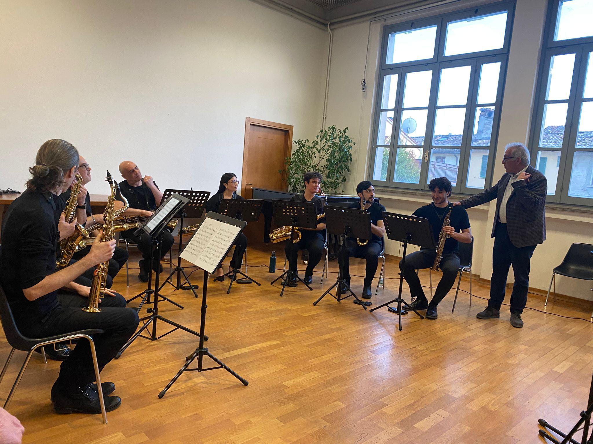 Un esito sonoro inedito e di grande impatto, capace di conquistare il pubblico che gremiva l’auditorium di Palazzo Corsi. Suggestioni veneziane e atmosfere porteñe si sono intrecciate in un percorso evocativo, valorizzato da arrangiamenti sapienti che hanno messo in luce tutte le sfumature timbriche della famiglia dei sassofoni, regalando momenti di intensa emozione.