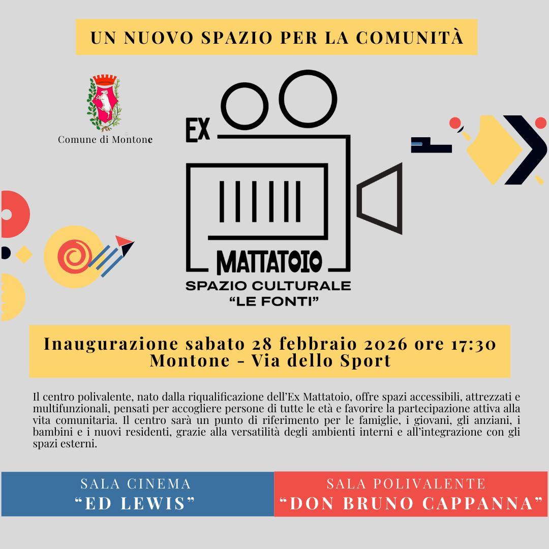 Un nuovo cuore pulsante per la comunità di Montone sta per aprire le porte. Sabato 28 febbraio 2026 alle ore 17.30 sarà inaugurato l’Ex Mattatoio – Spazio Culturale “Le Fonti”, progetto di riqualificazione che restituisce alla cittadinanza un luogo storico trasformato in centro polivalente, accessibile e multifunzionale.