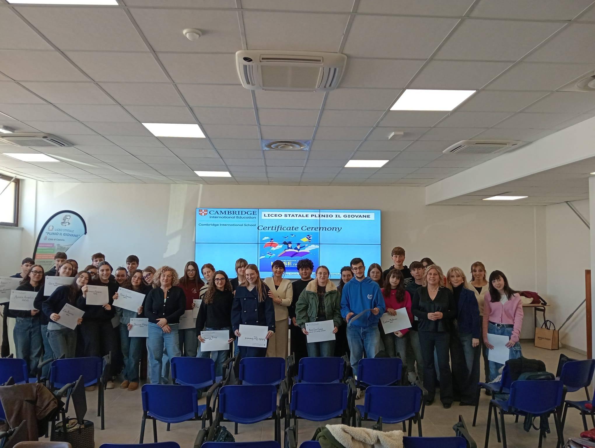 Sabato 21 febbraio, presso l’istituto tifernate, sono state consegnate le certificazioni per il superamento degli esami Cambridge Assessment International Education IGCSE (Maths, Latin e English as a Second Language) a 47 studenti delle classi quarte e quinte che hanno scelto l’opzione Cambridge International.