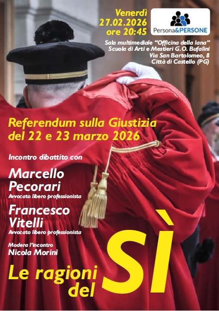L’Associazione Persona&PERSONE promuove un’iniziativa pubblica a sostegno delle ragioni del Sì in vista del referendum costituzionale del 22 e 23 marzo 2026, nella convinzione che anche la società civile debba contribuire al dibattito.