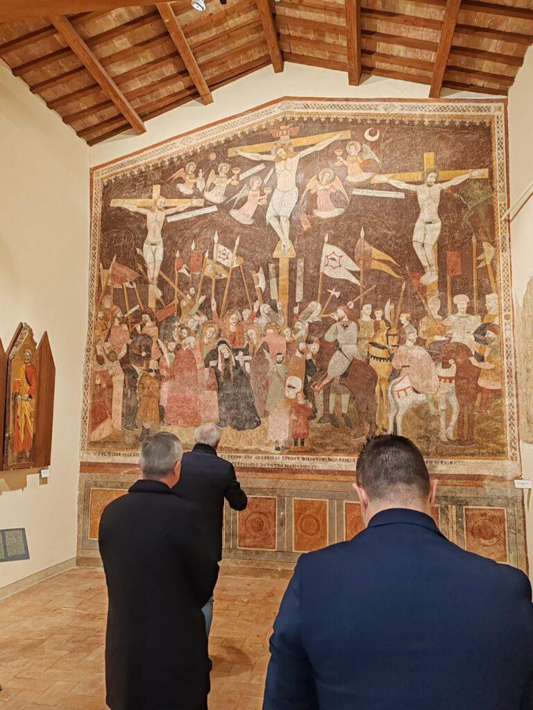 Successivamente ha visitato la Chiesa di San Giuseppe, dove è custodito il Gonfalone della Misericordia, stendardo processionale di grandi dimensioni attribuito a un pittore della scuola di Benedetto Bonfigli, tradizionalmente portato in processione in occasione di pestilenze, e il museo parrocchiale “don Aldo Rossi”, che conserva preziosi reperti religiosi.