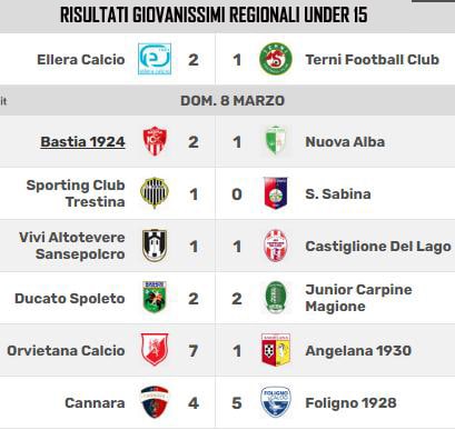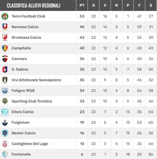 Sconfitta esterna invece per gli Allievi Regionali Under 17 di mister Marco Marinelli, battuti a Campitello. Un risultato che non compromette il buon percorso stagionale della squadra, attualmente nona in classifica con 33 punti. Il prossimo impegno sarà in casa contro il Foligno.