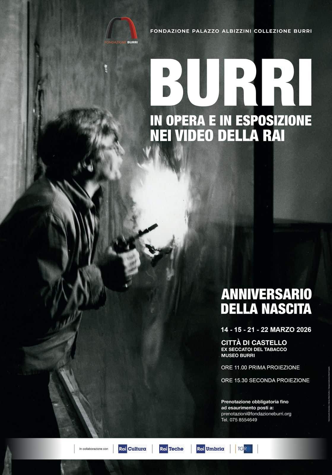 L’iniziativa, realizzata in collaborazione con RAI Umbria, RAI Teche e RAI Cultura, propone una rassegna di proiezioni video inedite provenienti dagli archivi RAI, con un montaggio “a collage” che documenta Burri in azione e ripercorre le sue esposizioni storiche in prestigiose sedi museali.