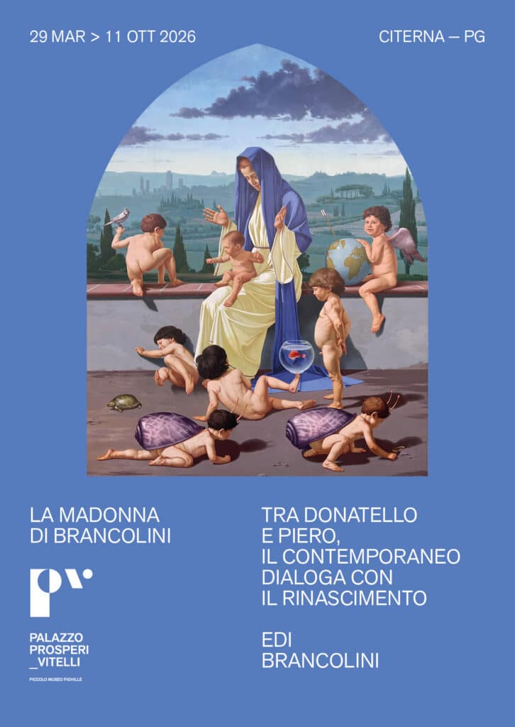 Più lunga la durata della seconda esposizione: fino all’11 ottobre Palazzo Prosperi Vitelli ospiterà “La Madonna di Brancolini”, un progetto che mette in relazione il contemporaneo con due capolavori assoluti del Rinascimento, la Madonna di Donatello a Citerna e la Madonna del Parto di Piero della Francesca a Monterchi. Un confronto suggestivo tra epoche e visioni, nel segno della continuità artistica.