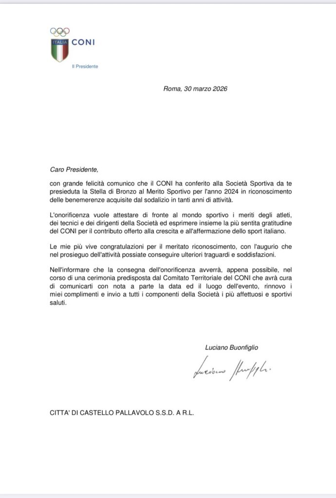 Nel messaggio ufficiale, il CONI ha sottolineato il valore del lavoro svolto da atleti, tecnici e dirigenti, esprimendo gratitudine per l’impegno e i risultati raggiunti nel tempo.
