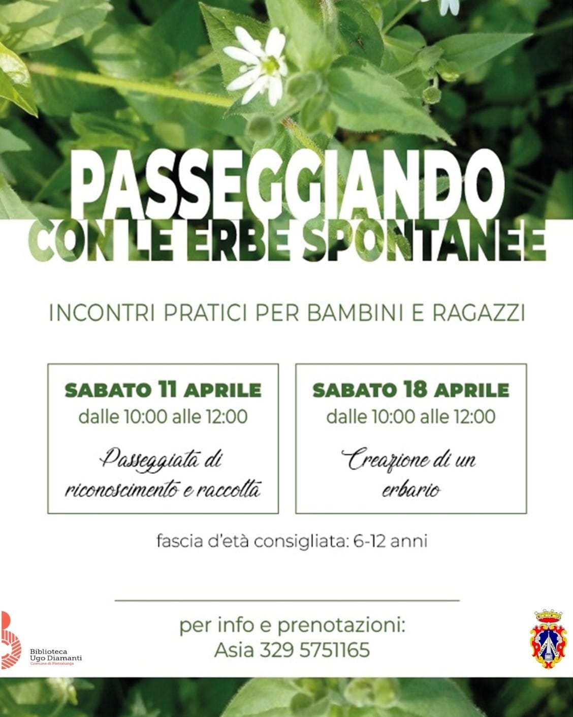 L’iniziativa, intitolata “Passeggiando con le erbe spontanee”, prevede due incontri pratici rivolti a bambini e ragazzi dai 6 ai 12 anni, per imparare a riconoscere le piante e realizzare un erbario.