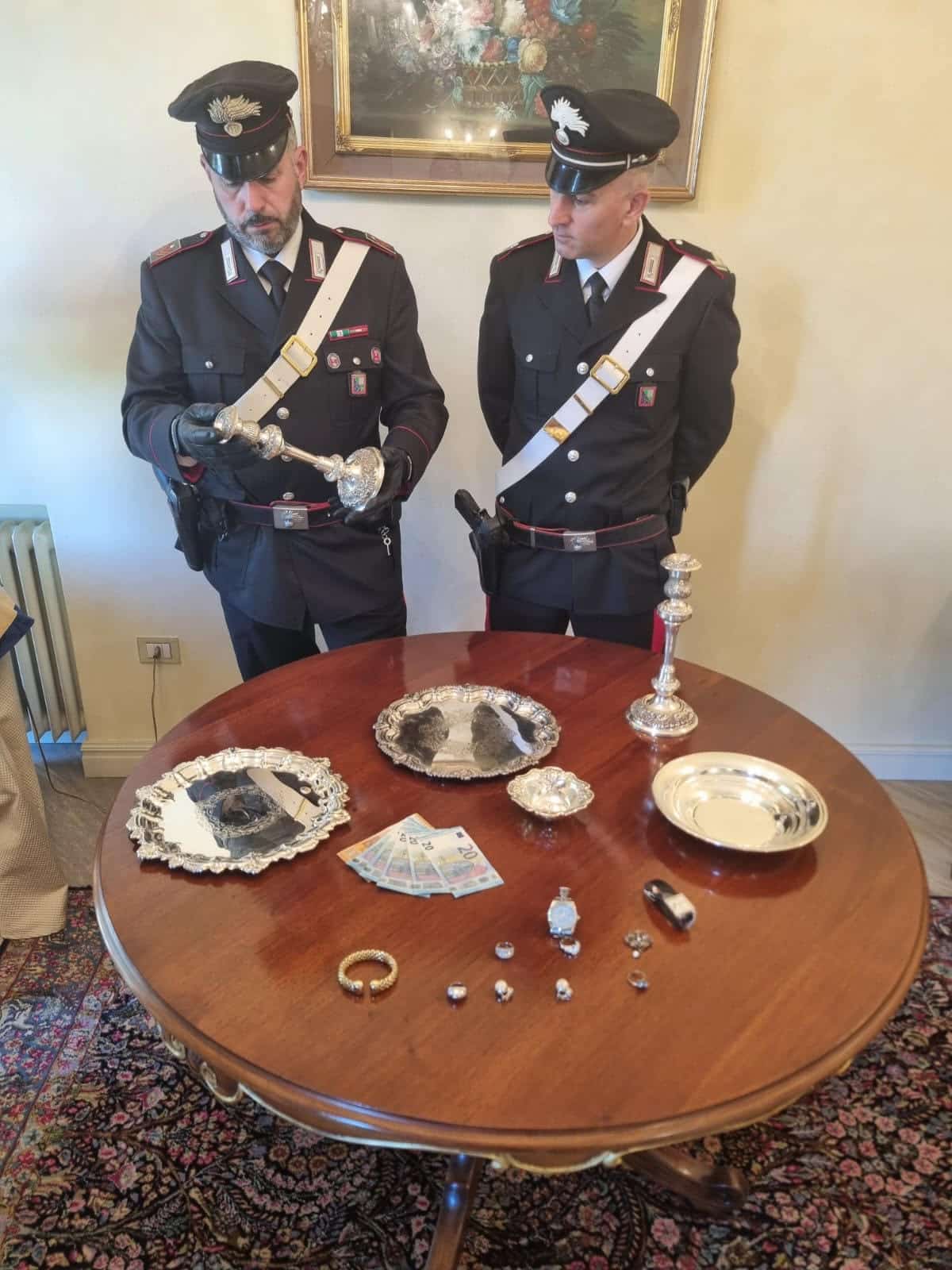 I Carabinieri sono intervenuti tempestivamente, trovando la vittima ancora al telefono e pronta a consegnare una borsa contenente gioielli per un valore di circa 20.000 euro e 280 euro in contanti.