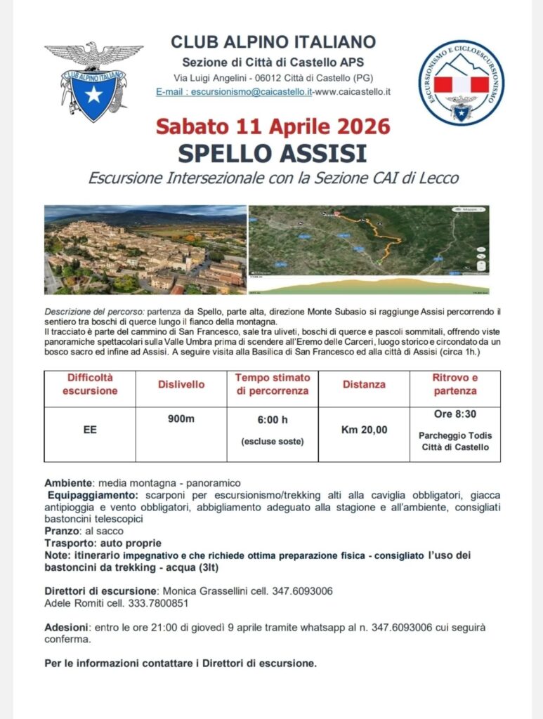 Sabato 11 aprile si terrà il percorso “Spello-Assisi”, un itinerario suggestivo tra i borghi di Spello e Assisi, immerso nella bellezza del paesaggio umbro e ricco di storia e spiritualità.
