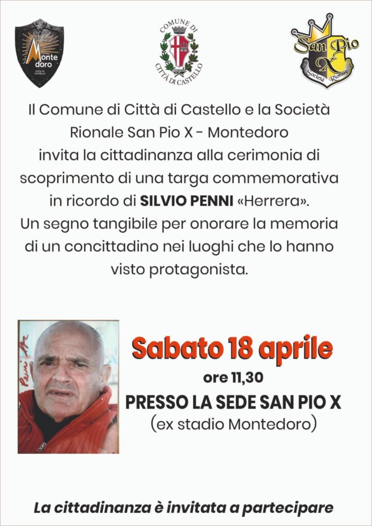 Un gesto semplice ma carico di significato per ricordare una figura amatissima: Città di Castello renderà omaggio a Silvio Penni, conosciuto da tutti come “Herrera”, con l’inaugurazione di una targa commemorativa nel luogo che più ha segnato la sua vita.