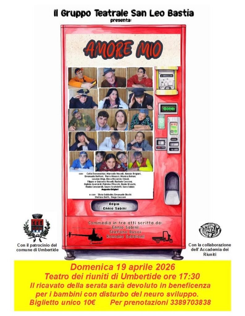 Il Gruppo Teatrale San Leo Bastia porta in scena la commedia “Amore Mio”, un appuntamento tra divertimento e solidarietà in programma a Umbertide.