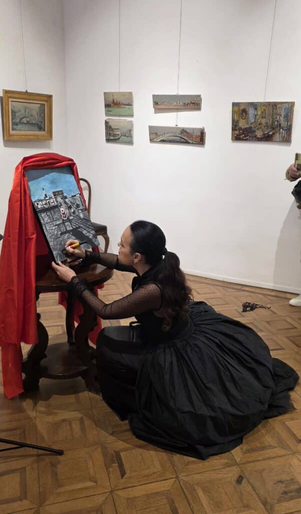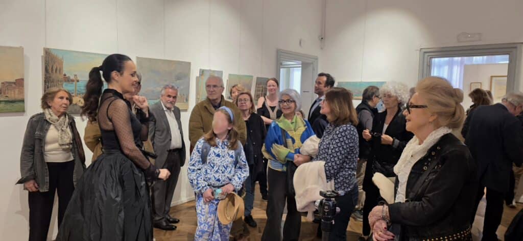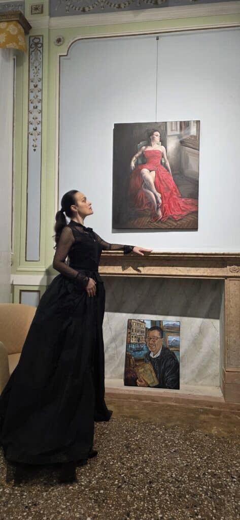 VENEZIA – Grande successo di pubblico e critica a Palazzo Pisani Revedin per l’artista tifernate Moira Lena Tassi, protagonista della vibrante performance “Venise en attente, hommage à André Hambourg”. L’evento, ideato ed interpretato dall’artista stessa, ha inaugurato la prestigiosa mostra dedicata alle vedute veneziane del maestro francese André Hambourg, promossa dall’associazione “Les Amis d’André Hambourg” e patrocinata da Alliance Française di Venezia, siglando un incontro culturale di alto profilo tra Italia e Francia.