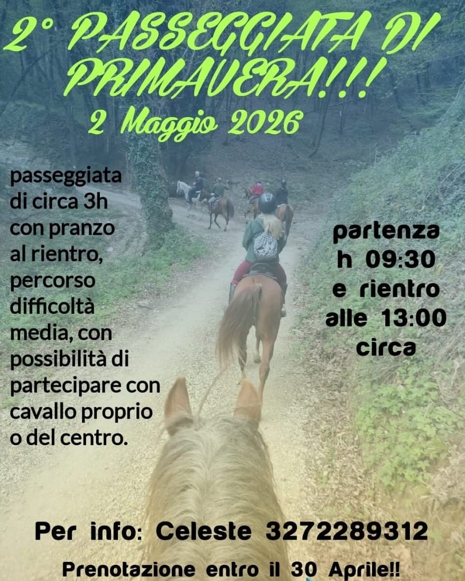 L’Associazione Mostra Nazionale del Cavallo organizza, in collaborazione con il Centro Ippico Freedom, la 2ª Passeggiata di Primavera a Cavallo in programma il 2 maggio 2026.