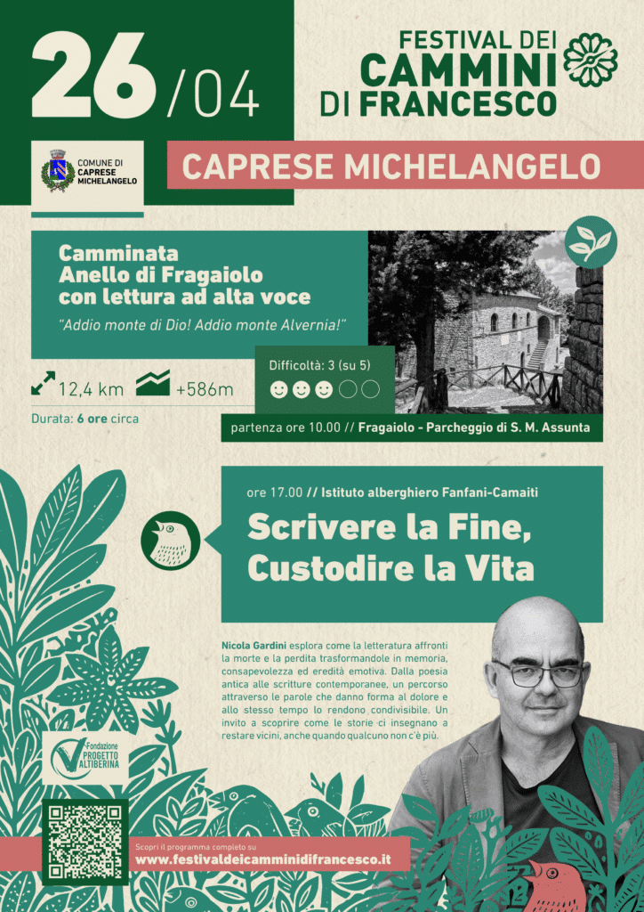 Il fine settimana proseguirà domenica 26 aprile a Caprese Michelangelo, con una giornata che intreccia esperienza del cammino e riflessione letteraria.